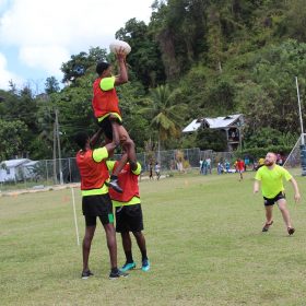 Het nationaal rugby team, hier heb ik geen training gegeven, maar wel zelf mogen meetrainen! Dat vond ik super leuk, zeker omdat ik pas begon met rugby toen ik op Saint Lucia aankwam. De hoofdcoach van dit team werkte ook samen met mij voor het REELA programma en zo rolde ik mee in de trainingen. Ik vond rugby altijd een toffe sport, maar nu ik de kans had om op dit niveau mee te doen kon ik die niet voorbij laten gaan. Ook hier zeker vrienden gemaakt waarmee ik nog steeds contact hebt maar ook veel ervaring op mogen doen door mee te spelen in het team.